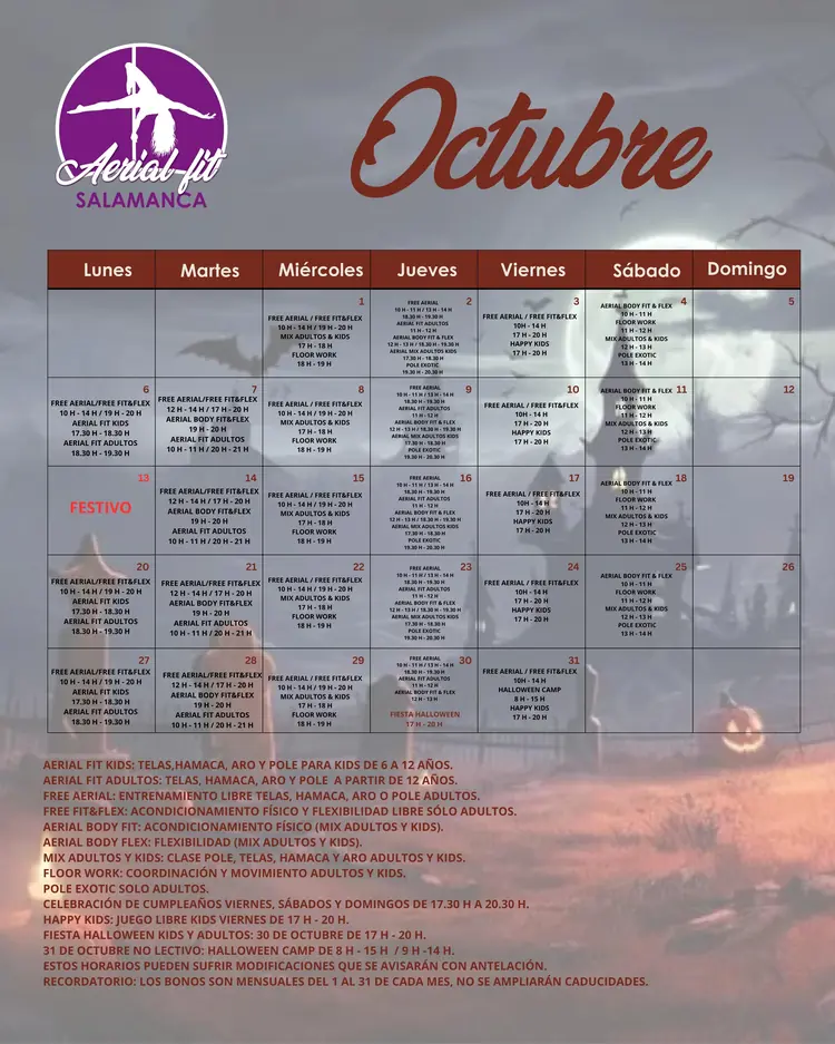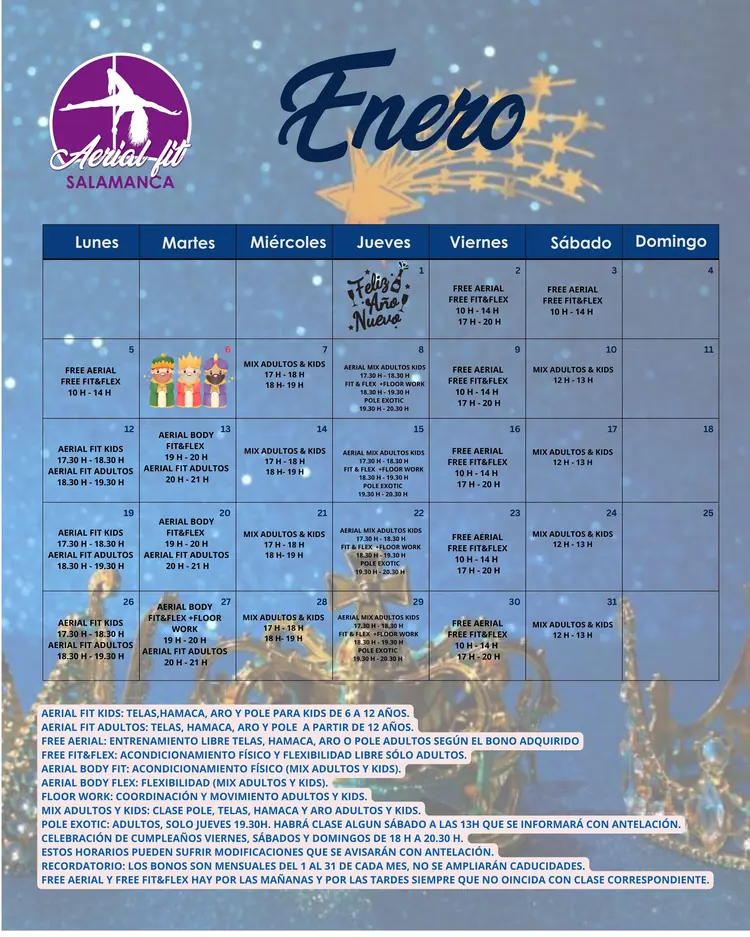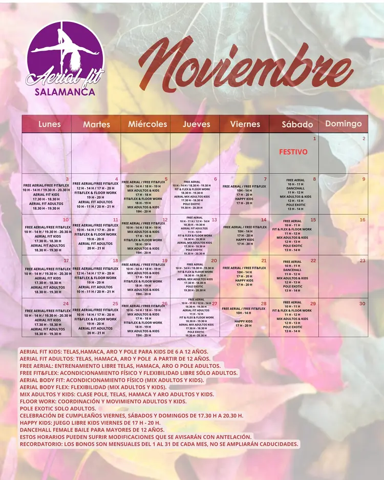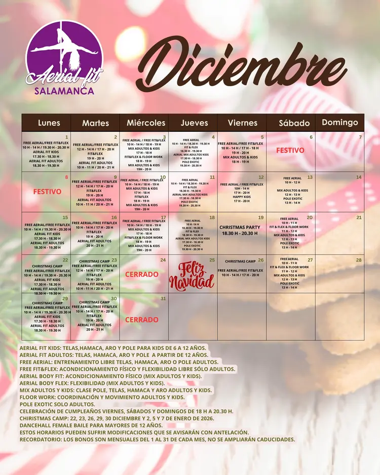 📅 Calendario Diciembre – Aerial Fit Salamanca